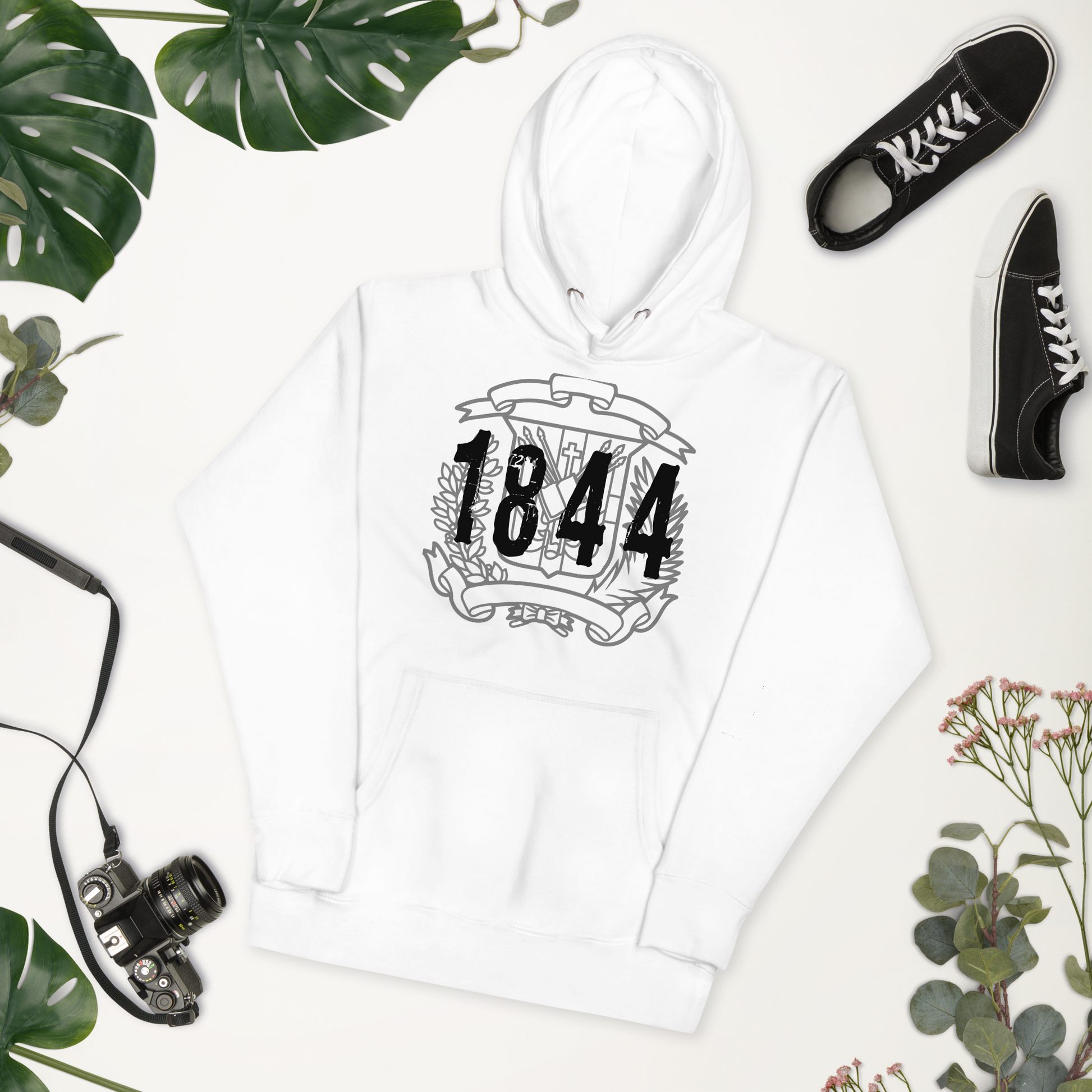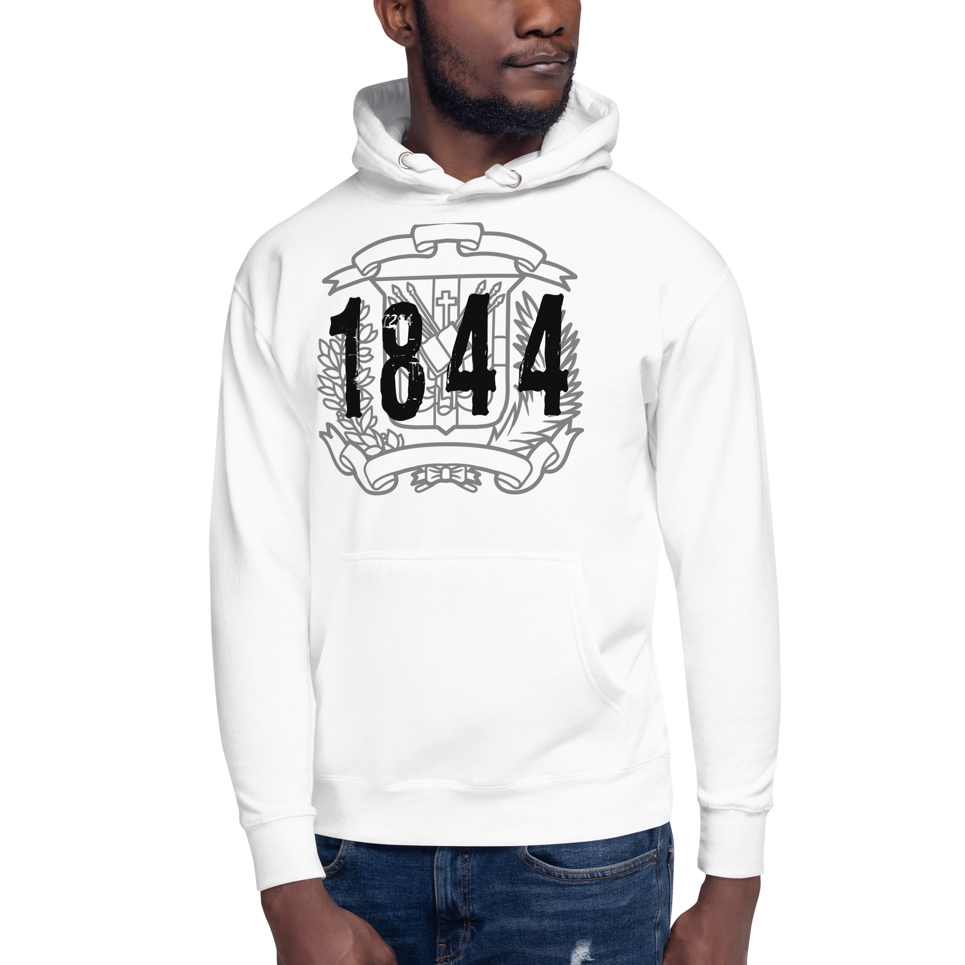 Abraza tus raíces dominicanas con la sudadera con capucha "1844 Escudo". Los colores vibrantes y la fuente elegante capturan el espíritu de 1844, creando un momento de orgullo en la historia dominicana. Esta sudadera es más que una prenda; es una declaración de orgullo cultural y conexión con el espíritu resiliente de la República Dominicana.